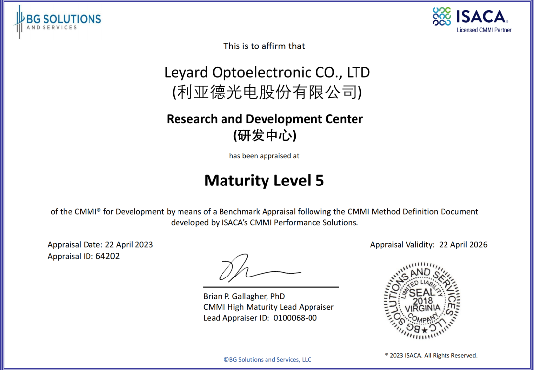 凯发(中国)官网通过全球软件领域难度最大、规格最高的软件开发能力成熟度认证CMMI 5,并获CMMI研究院ISACA颁发的CMMI 5 V2.0认证证书